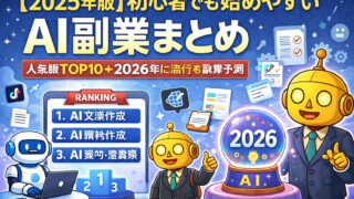 「AI副業って気になる。でも難しそうで手が出ない…」その不安、めちゃくちゃ自然です。AIは情報が多いし、ツール名も次々出てきます。だからこそ本記事では、2025年に“実際に選ばれているAI副業”を初心者向けに人気順で整理し、さらに2026年...