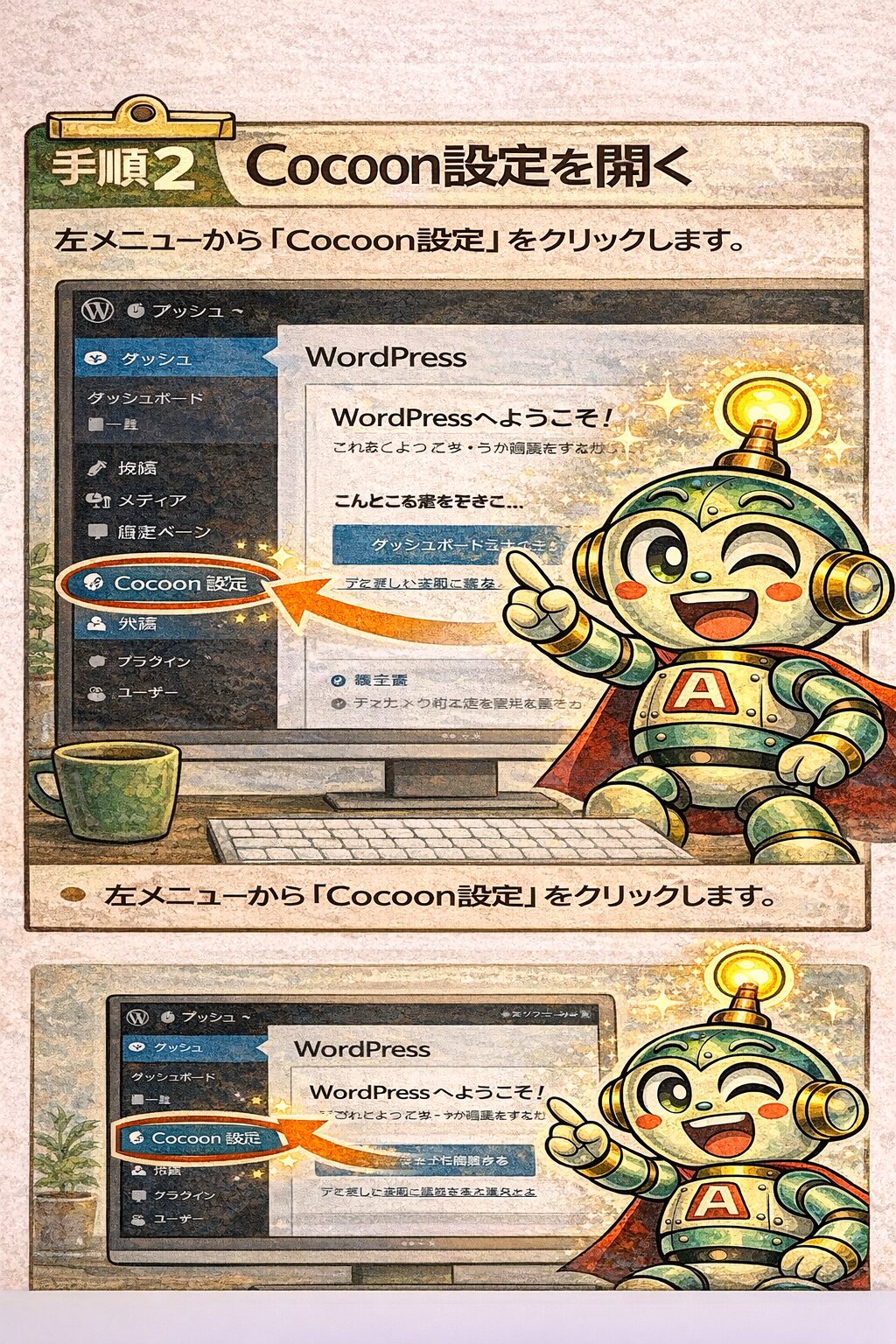 Cocoonテーマを使っているなら、最短1分で設定できます。