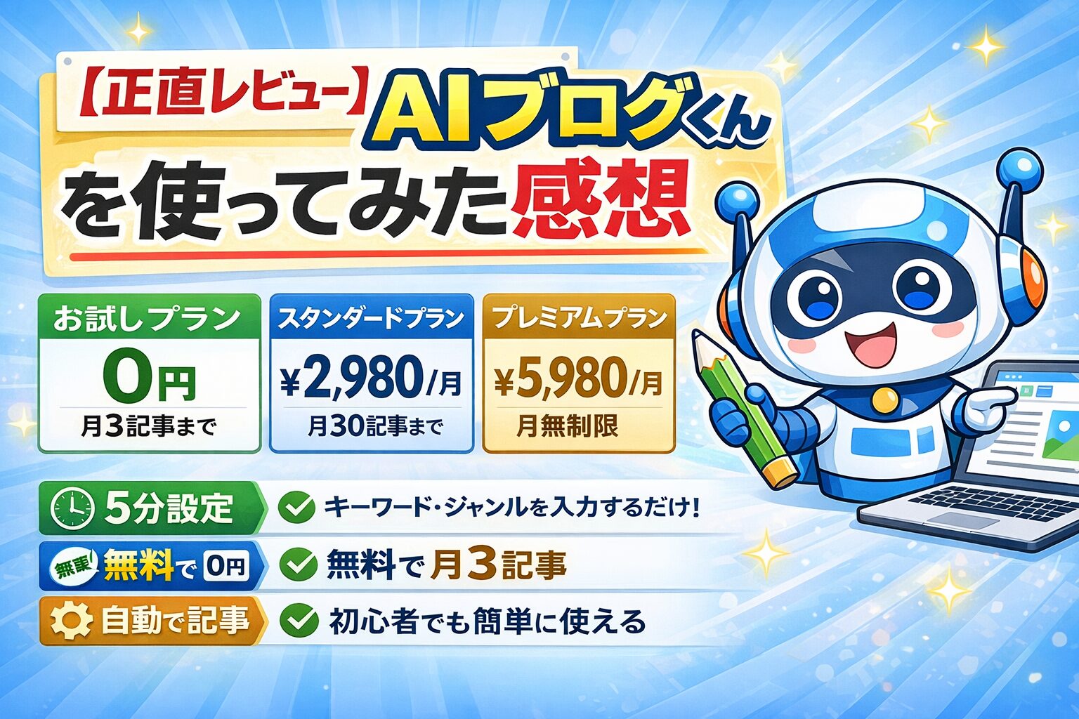 【正直レビュー】AIブログくんを使ってみた感想|5分設定・無料で月3記事・自動生成の実力と注意点