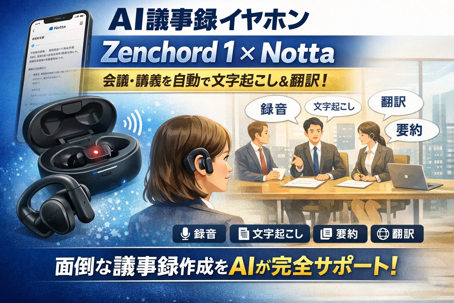 【AI議事録イヤホン】Zenchord 1 × Notta 連携で録音・文字起こし・要約・翻訳が自動化!会議・講義・打ち合わせの負担を大幅に軽減