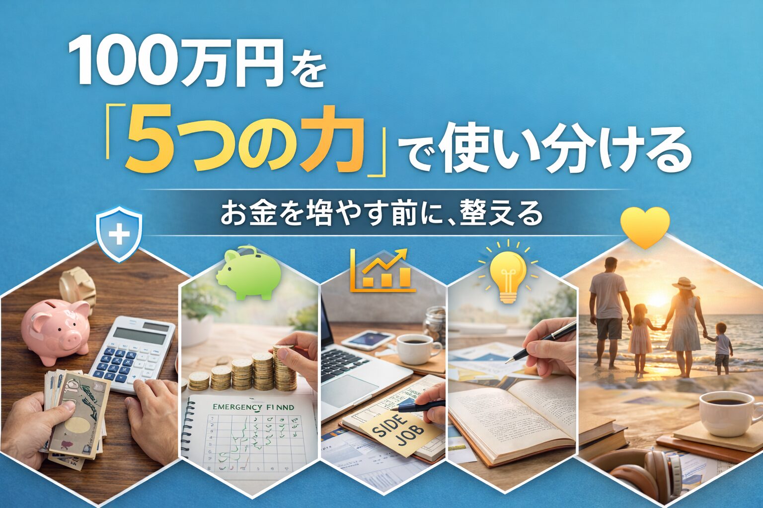 この記事では、この「5つの力」を使って、100万円をどう使い分けると、失敗しにくく、人生が安定するのかを、投資初心者にもわかるように解説していきます。